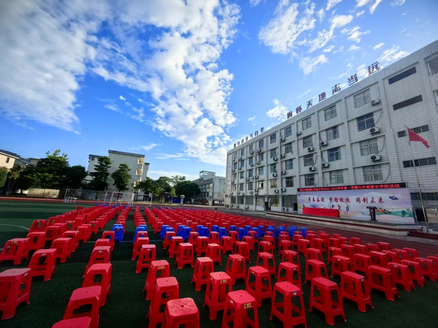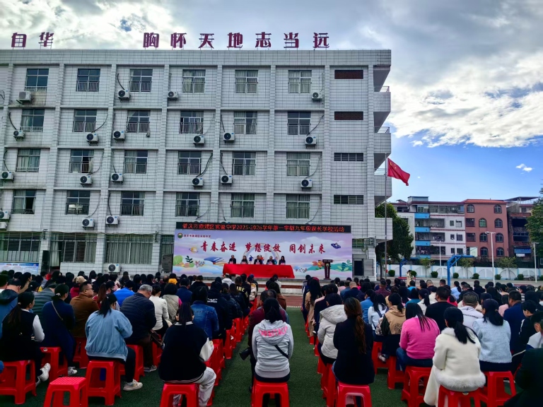 晨光微熹,清风拂面。不到八点半,九年级的家长们已在学校学生引领员的热情指引下,陆续来到足球场,按照班级指定区域有序就坐。他们的眼神中,充满了对孩子的关切与对学校的期待。操场上的条幅“共筑未来桥梁,家校携手前行”在阳光下格外醒目,奠定了本次家长会温暖而有力的基调。