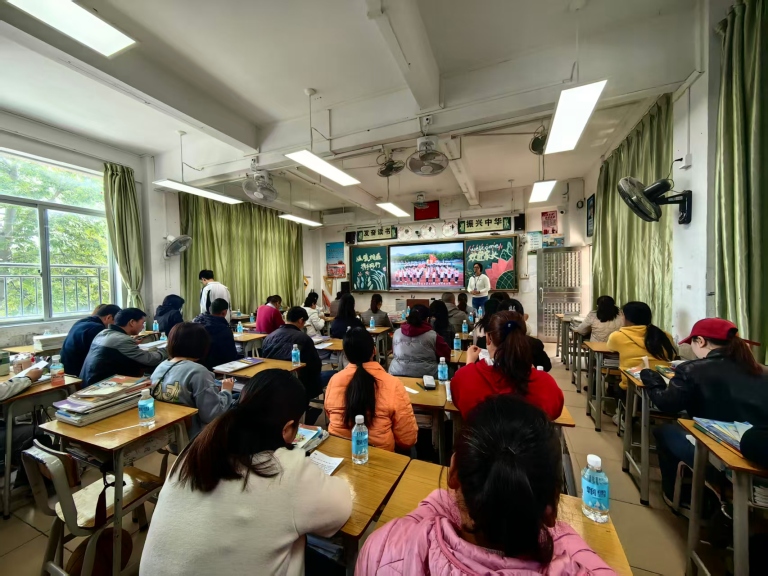 接着,谢惠玲老师从以下四个方面进行解读:一是回顾过往,树立信心。展示2025年的中考“成绩单”,我校被肇庆中学、肇庆宣卿中学、肇庆中学大旺实验学校、鼎湖中学、广利高级中学等录取的人数。二是解读当下,看清前路。深入解读了当前中考核心政策(文化课、体育等)。三是明晰流程,解开疑惑。明确音乐、美术、信息科技考试的报名流程、时间节点、注意事项等。四是家校合力,行动同频。中考是一场需要孩子、学校与家长三方协力的“征程”。孩子们的拼搏是基石,学校的教导是方向,而家长的理解、支持与陪伴,则是他们最温暖的港湾与最坚实的后盾。