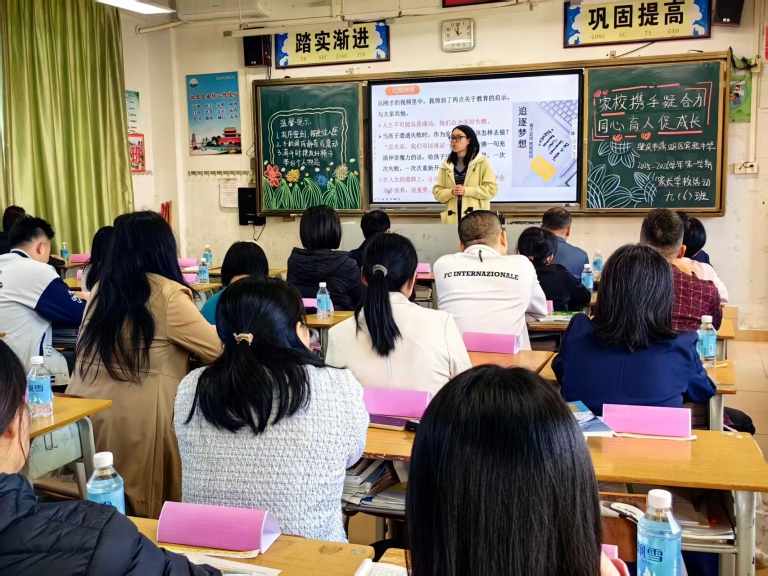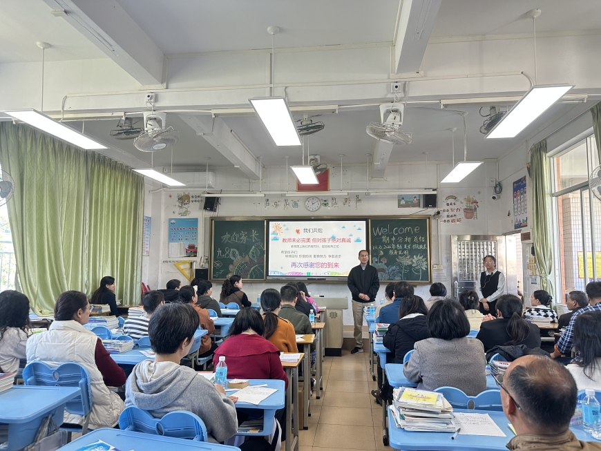 张达文校长和叶浩荣副校长先后发表了重要讲话。张校长向家长们提出三点倡议:一、当好“后勤部长”,营造温暖家庭氛围,关注健康与营养、睡眠、锻炼,多倾听鼓励,少指责施压。二、当好“心理导师”,引导孩子正确看待压力与挫折,树立合理期望,成为最好的自己。三、当好“战略盟友”,信任学校、配合老师,主动沟通,形成教育合力,不在孩子面前质疑老师。