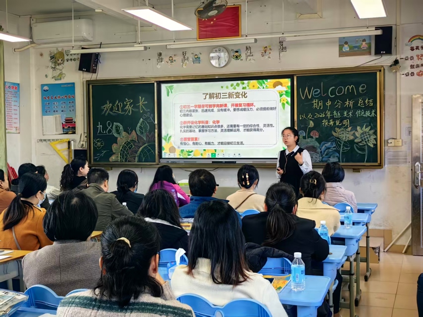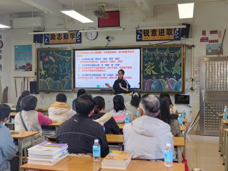 各班班主任精心准备了课件,进行“家长学校”授课,并从《父母课堂》中选取精华内容与家长分享。随后,班主任们就防溺水、交通、心理等安全教育事项做了重点提醒,并详细分析了班级整体情况、期中检测数据以及孩子们在校的日常表现,让家长对孩子所处的集体和自身定位有了全方位的了解。特别在备考方法上重点介绍了各科提分策略、错题管理、时间管理和心态与压力的调节。