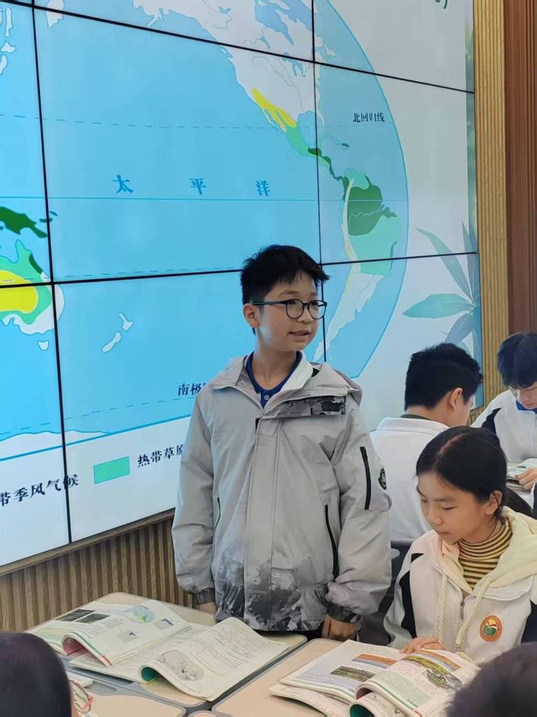 课堂上,梁老师以“大熊猫租借背后的气候密码”为切入点,巧妙结合热带草原气候、热带季风气候等地理知识,引导学生分析南非、印度申请租借熊猫被拒的气候原因。她运用气候资料图、景观图片等丰富素材,通过小组讨论、问题探究等互动形式,将抽象的气候知识具象化,充分调动了学生的学习积极性。整堂课逻辑清晰、环节紧凑,既注重知识的传授,又着力培养学生的地理思维能力,展现了青年教师的教学风采与创新理念。