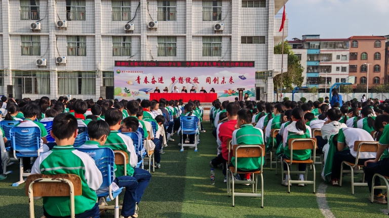 岁聿云暮,序启新章。转眼间,2025-2026学年第一学期的校园时光圆满落幕。为全面梳理本学期教育教学工作成果,展示师生共同进步的积极风貌,进一步激励学生向榜样看齐、奋发向上,同时强化学生寒假期间的安全意识与法治观念,营造平安、健康、文明的假期氛围,2026年1月29日下午,鼎湖区实验中学举行了散学典礼暨安全法治教育活动。
