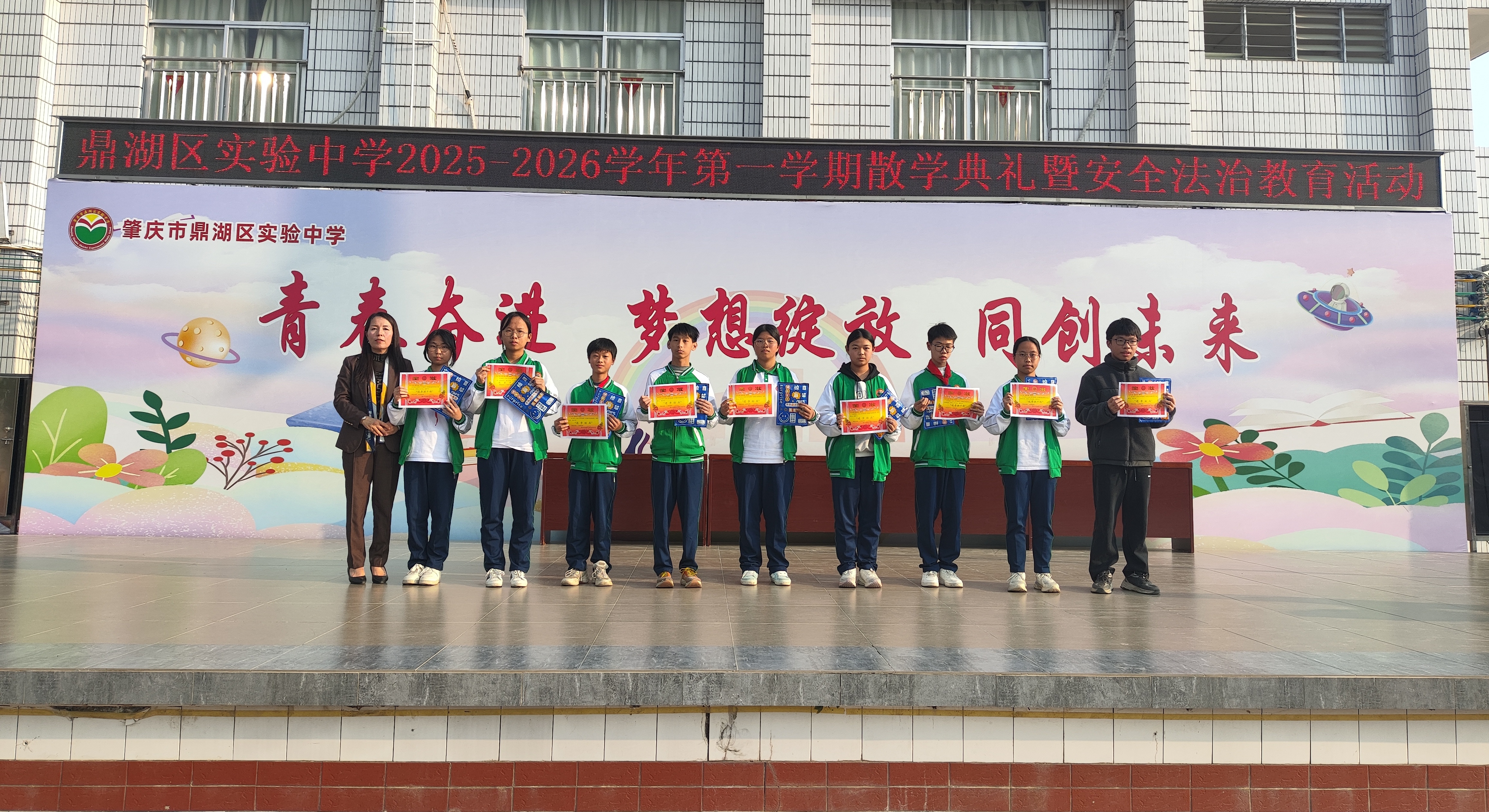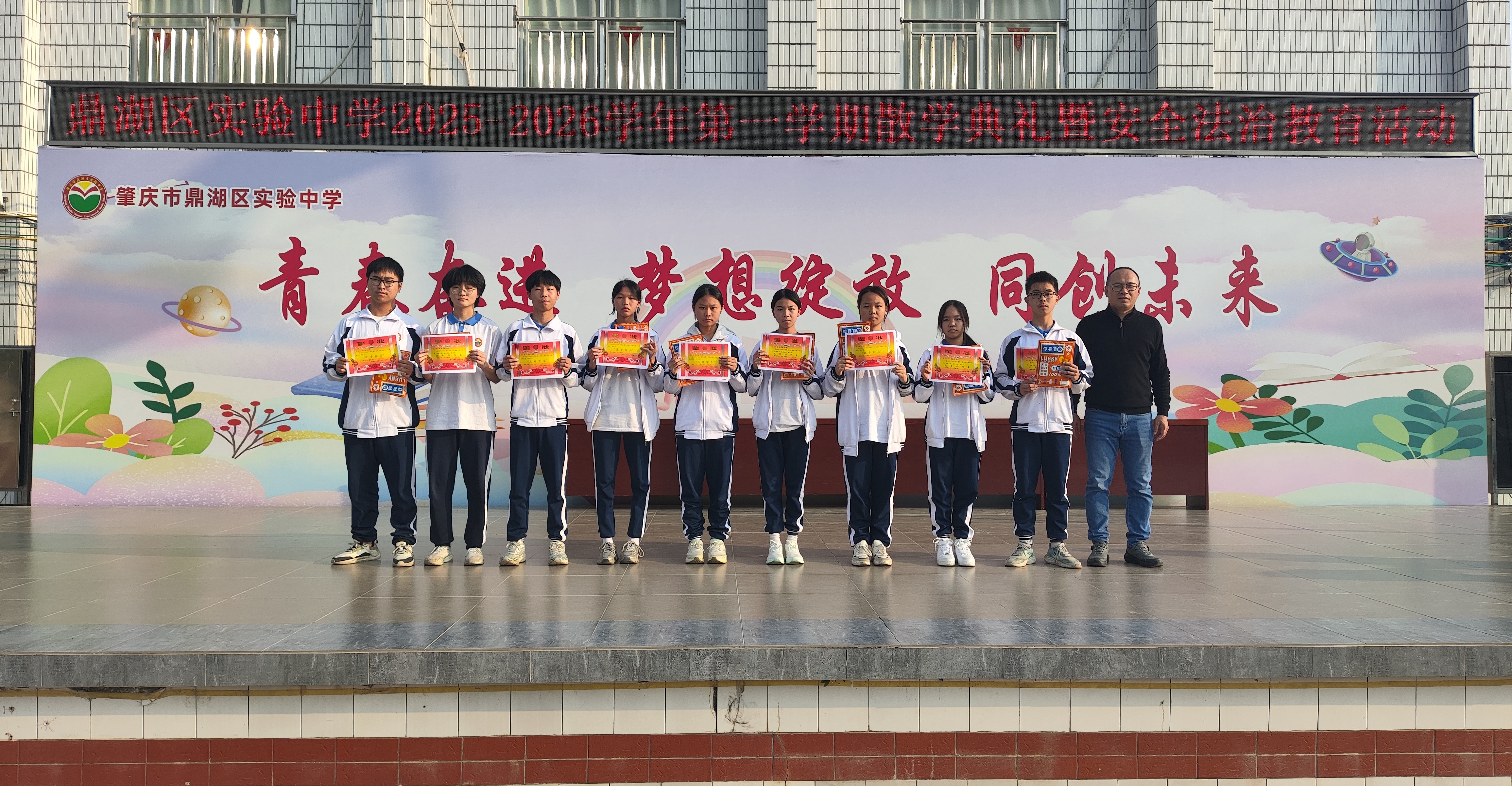 散学不落幕,成长不停歇。本次散学典礼暨安全法治教育活动,不仅为本学期的校园生活画上了圆满句号,更凝聚了人心、明确了方向、筑牢了防线。愿鼎湖区实验中学的全体学子,带着本学期的收获与感悟,怀揣校长与老师们的殷切期望,在假期中涵养品格、锤炼本领、守护安全,以崭新的姿态奔赴下一程山海,续写属于自己的成长华章!也祝愿全体教职工假期顺遂、万事顺意,祝愿学校的明天更加辉煌!