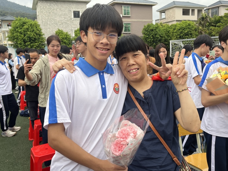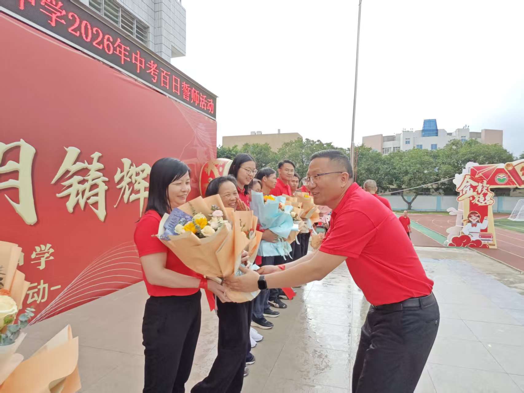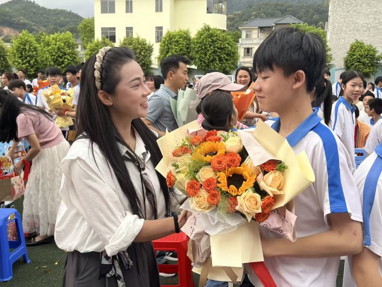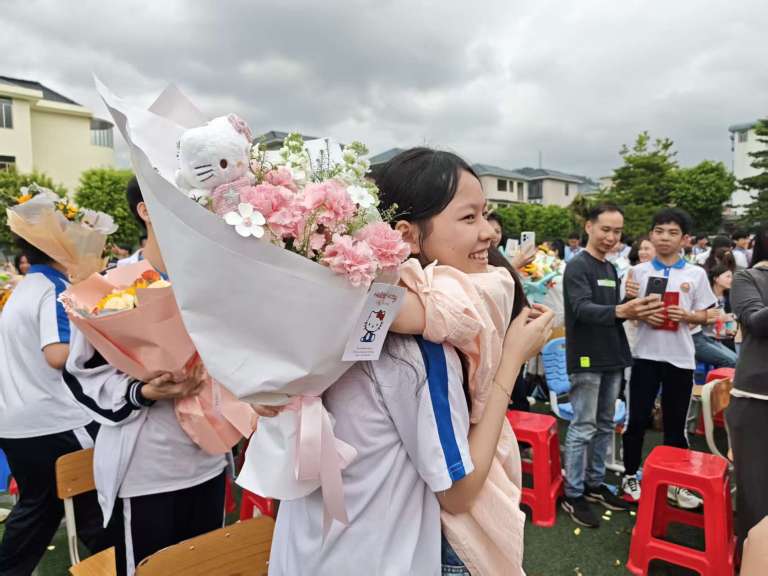在“花香伴祝福”环节,学校领导为辛勤耕耘的初三教师献上鲜花,感谢他们的无私付出;家长们则为孩子送上精心准备的祝福信与拥抱,殷殷嘱托、暖暖深情,化作学子前行的动力。