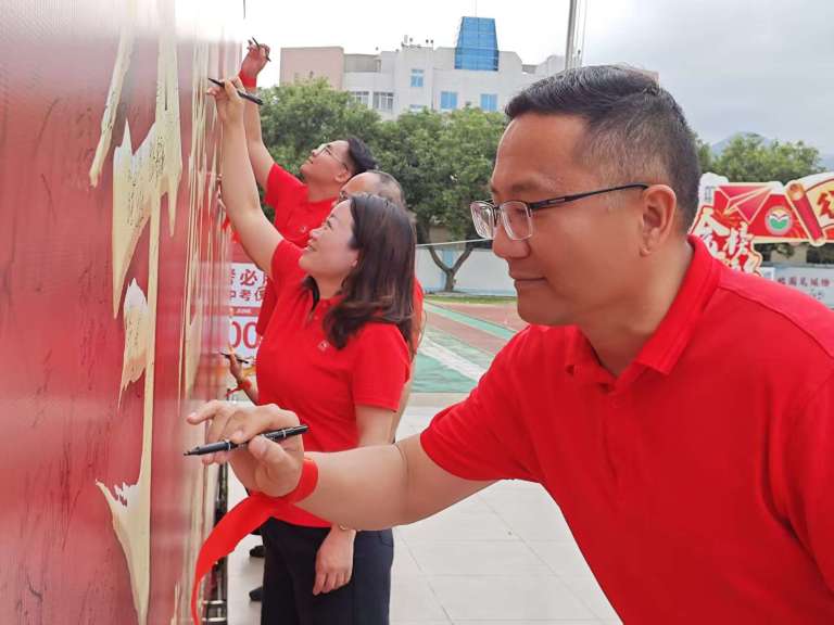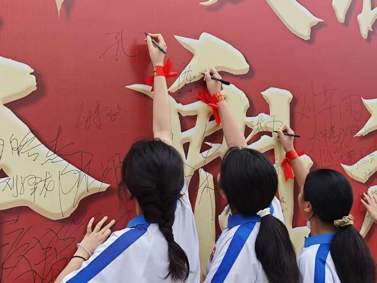 活动最后,全体师生与家长在印有“百日奋蹄破浪,夺魁六月铸辉煌”的签名墙上郑重签名,一笔一画皆誓言,一字一句皆承诺。镜头定格下无数感人瞬间,为这段奋斗岁月留下永恒印记。