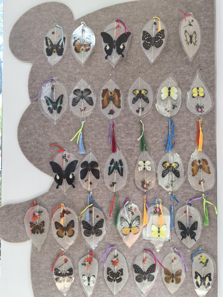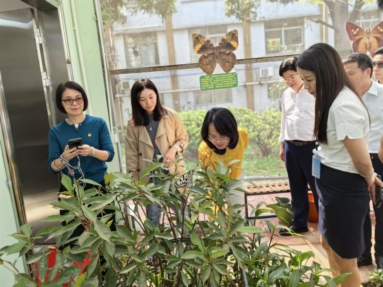 最后,领导和老师们来到了绿意葱茏、蝶舞翩跹的蝴蝶园,学生的一幅幅作品与标本充分体现了他们在自然科学探究中感受生命之美。